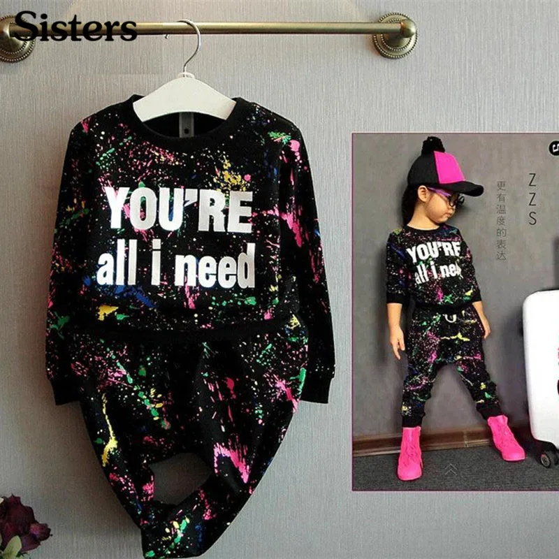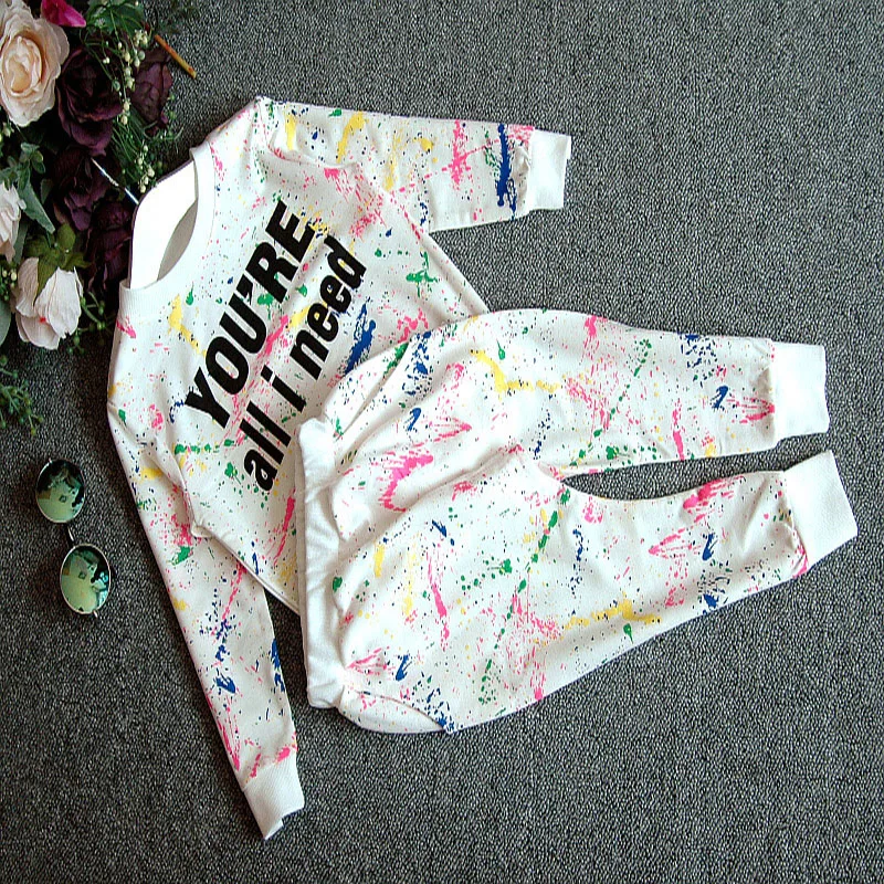 New Fashion Girls tracksuit baby kids sport clothes set coloful letter printed children suit clothi