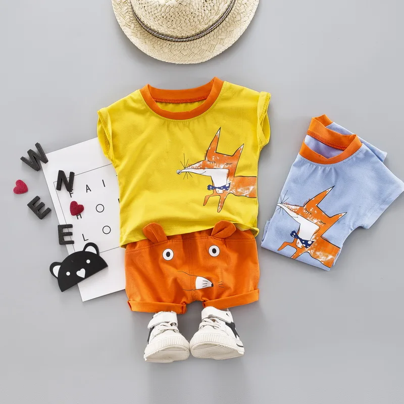 Toddler Boys Clothes Sets For 2019 Summer Cartoon Fox T-shirt+Shorts 2pc Outfit Boys Sport Suit Chi
