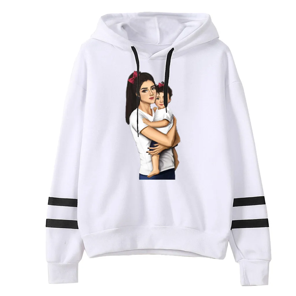 HIGH QUALITY Women Casual Hoodies Breathable Long Sleeve Sport Printed Sweatshirts Tops Family Winter Striped Ho