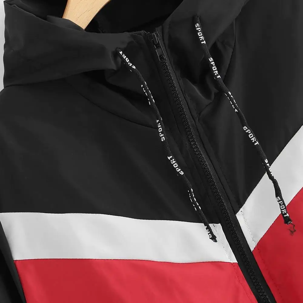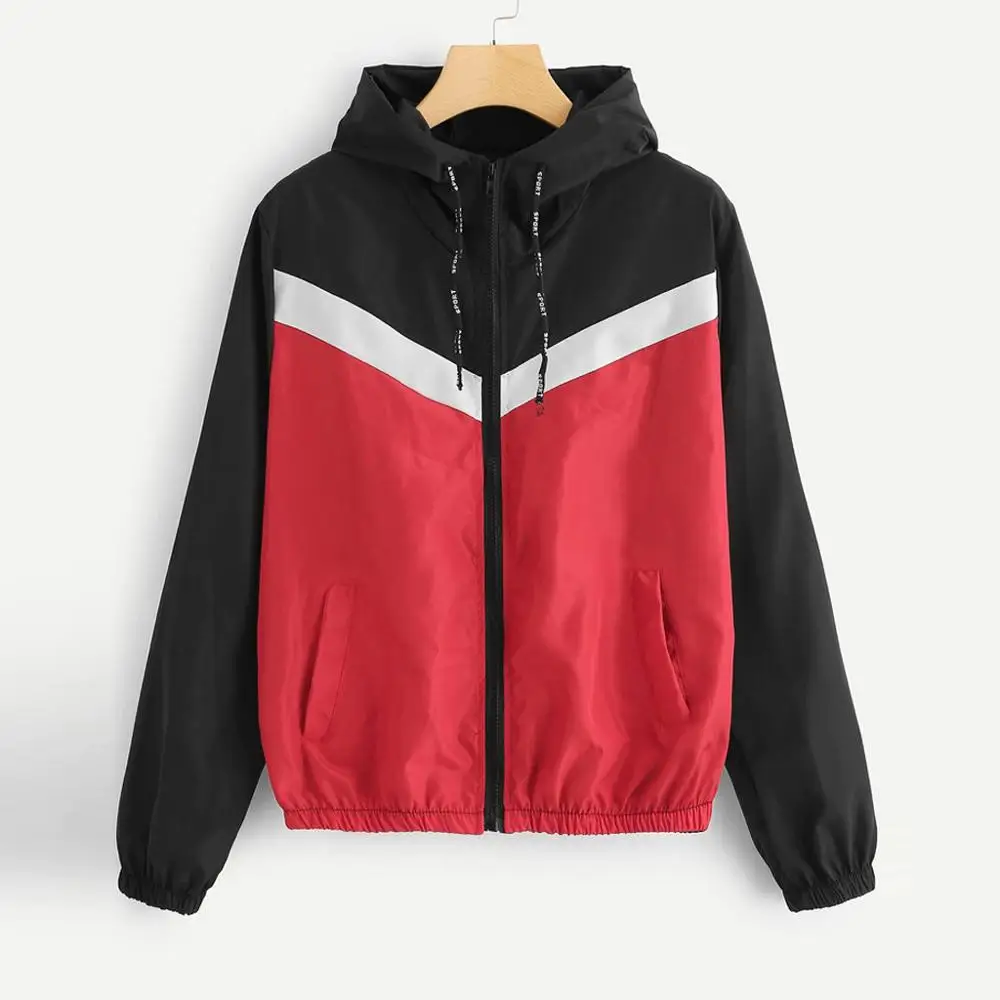 Women's Sports Hoodie Sweatshirt Casual Loose Patchwork Colors Autumn Long Sleeve Zipper Hoodie Swe