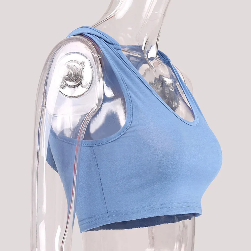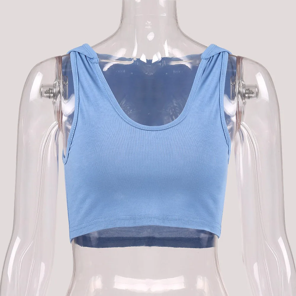 Women Fitness U-neck Morning Running Hoodie Tops Women Solid Sleeveless Hooded T-shirt Casual Sport