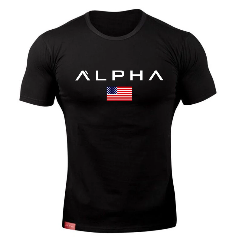 alpha Sport T Shirt Men Cotton Mens Running T-Shirt Sportswear Bodybuilding Fitness Shirt slim fit