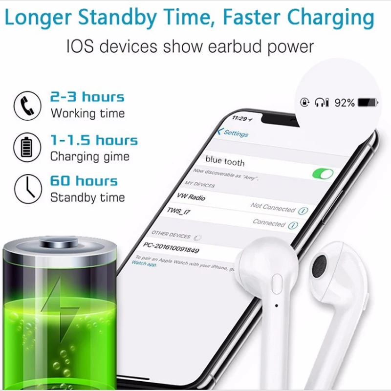 ORIGINAL Hot sale i7S Bluetooths Earphone Wireless Earbud Headset TWS Wireless Headphone